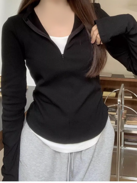 단색 슬림핏 페이크 투피스 여성 니트 티셔츠